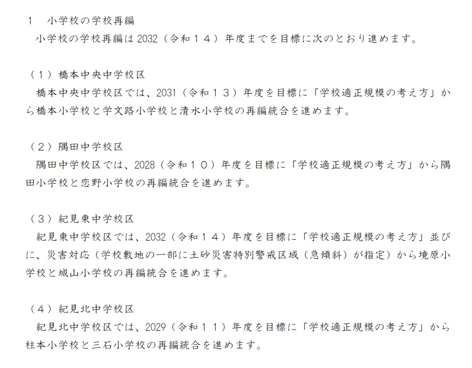 答申から半年後の令和6年(2024年)4月9日に出された第 2 期橋本市立小中学校適正規模・適正配置基本方針です。